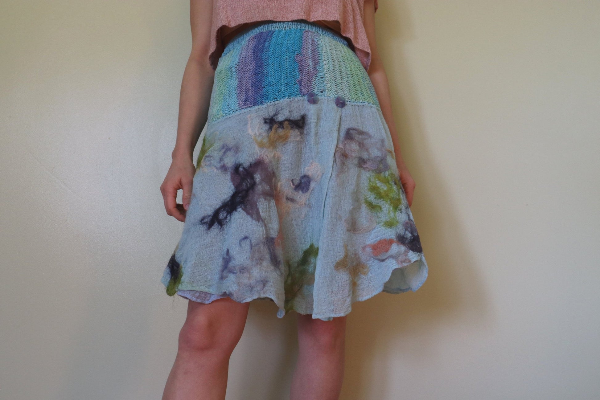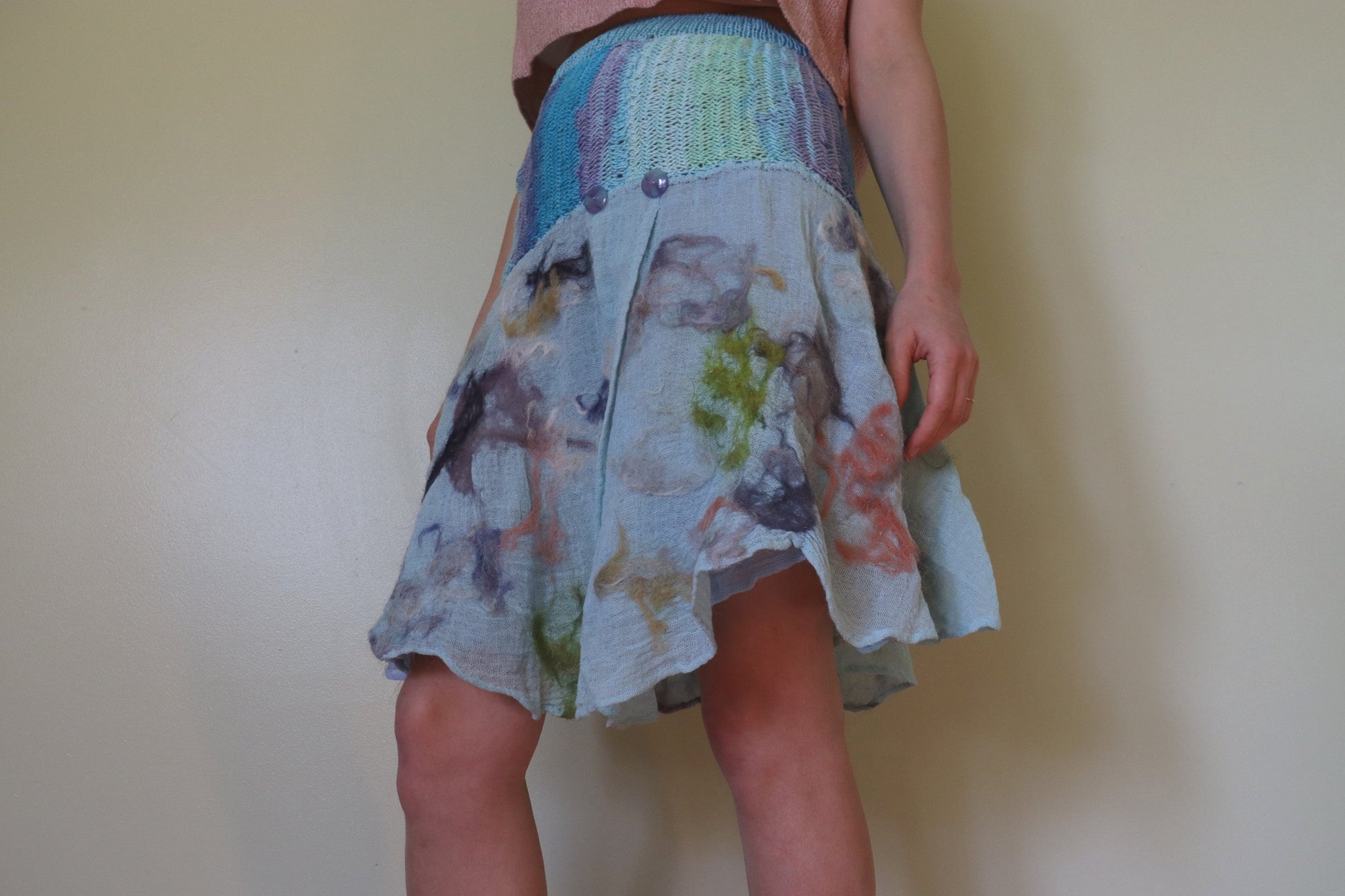 MAIN ready-dyed cotton gauze, felted with raw wool that was hand-dyed with natural and textile dyes