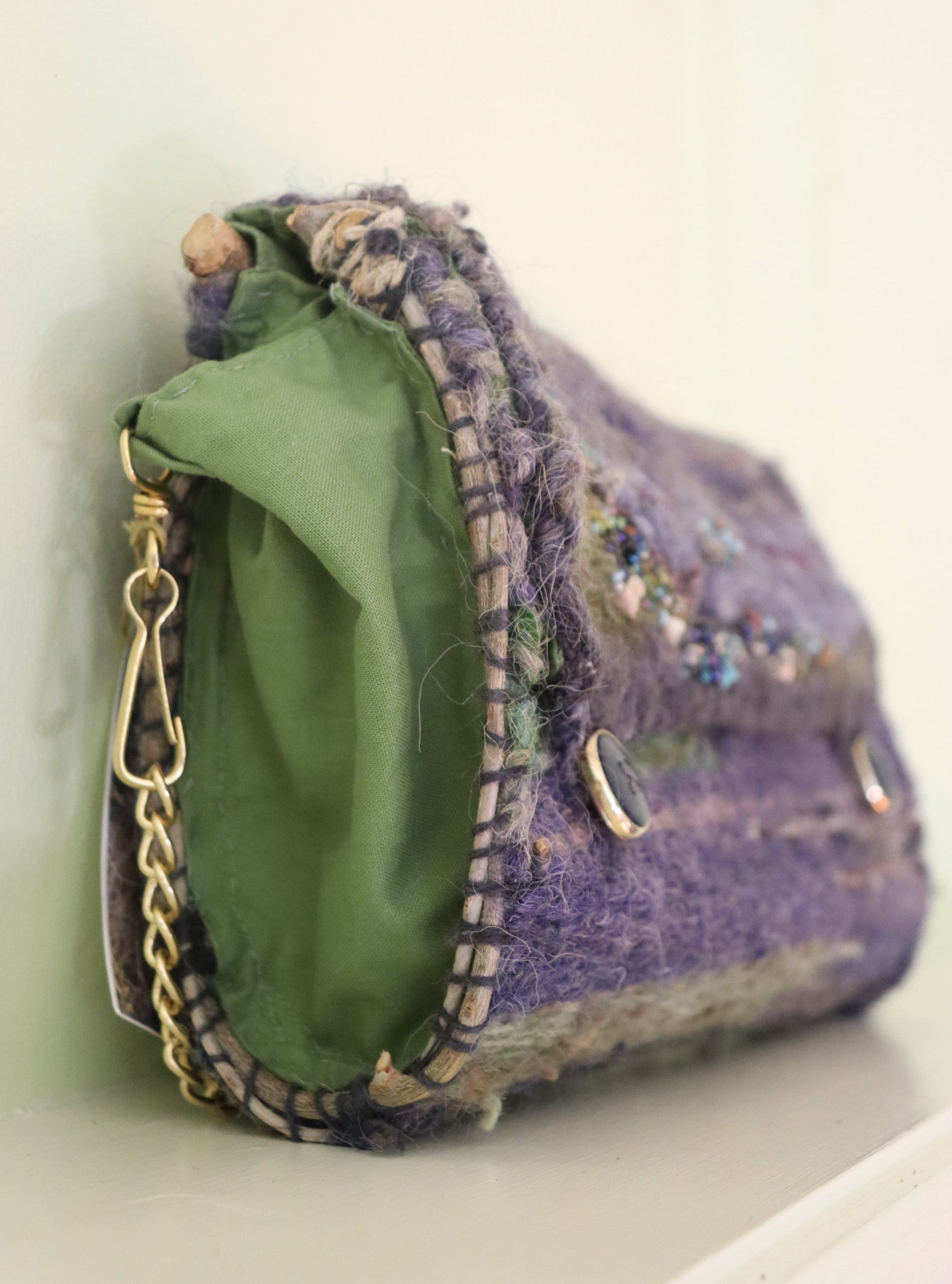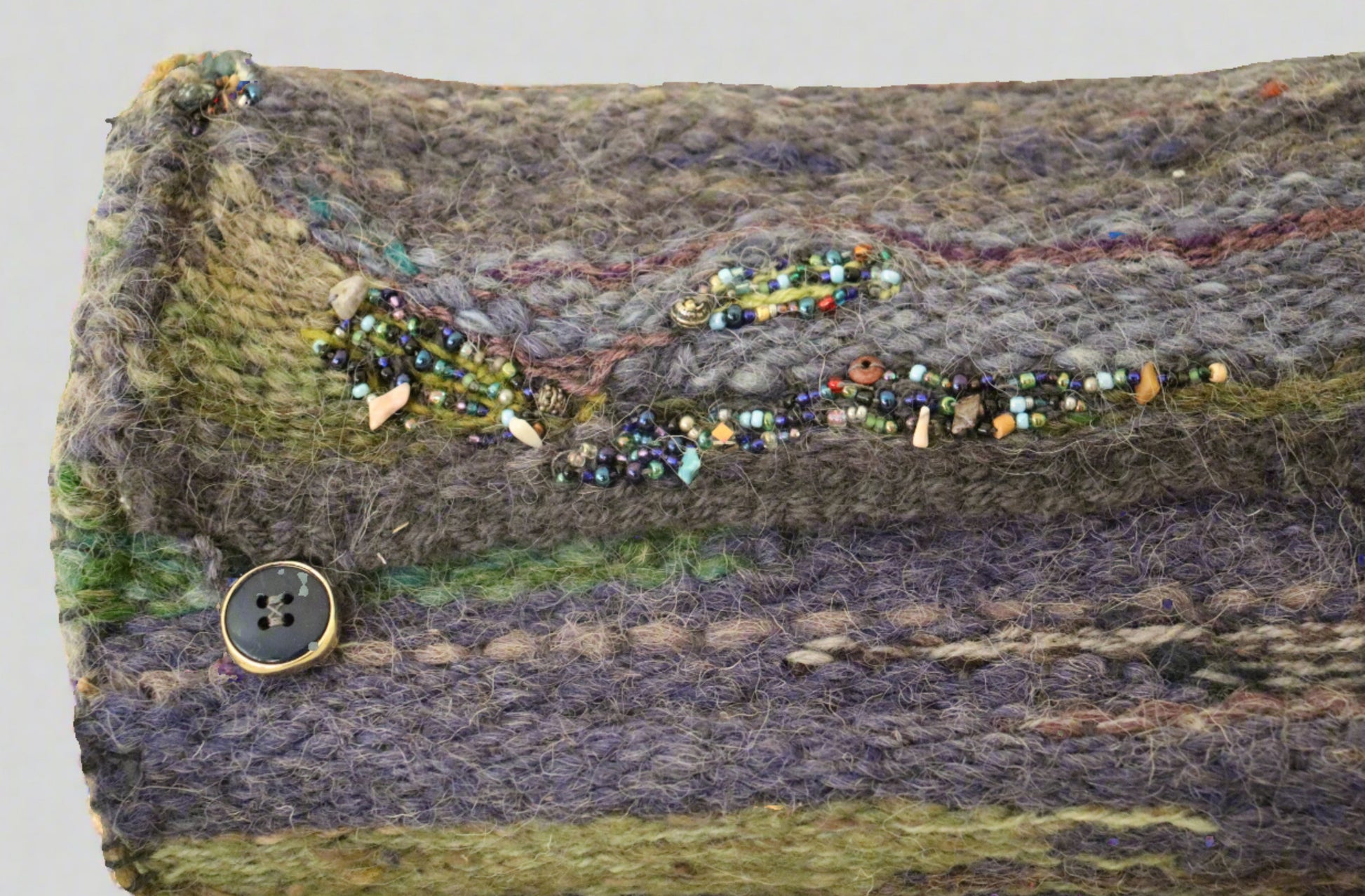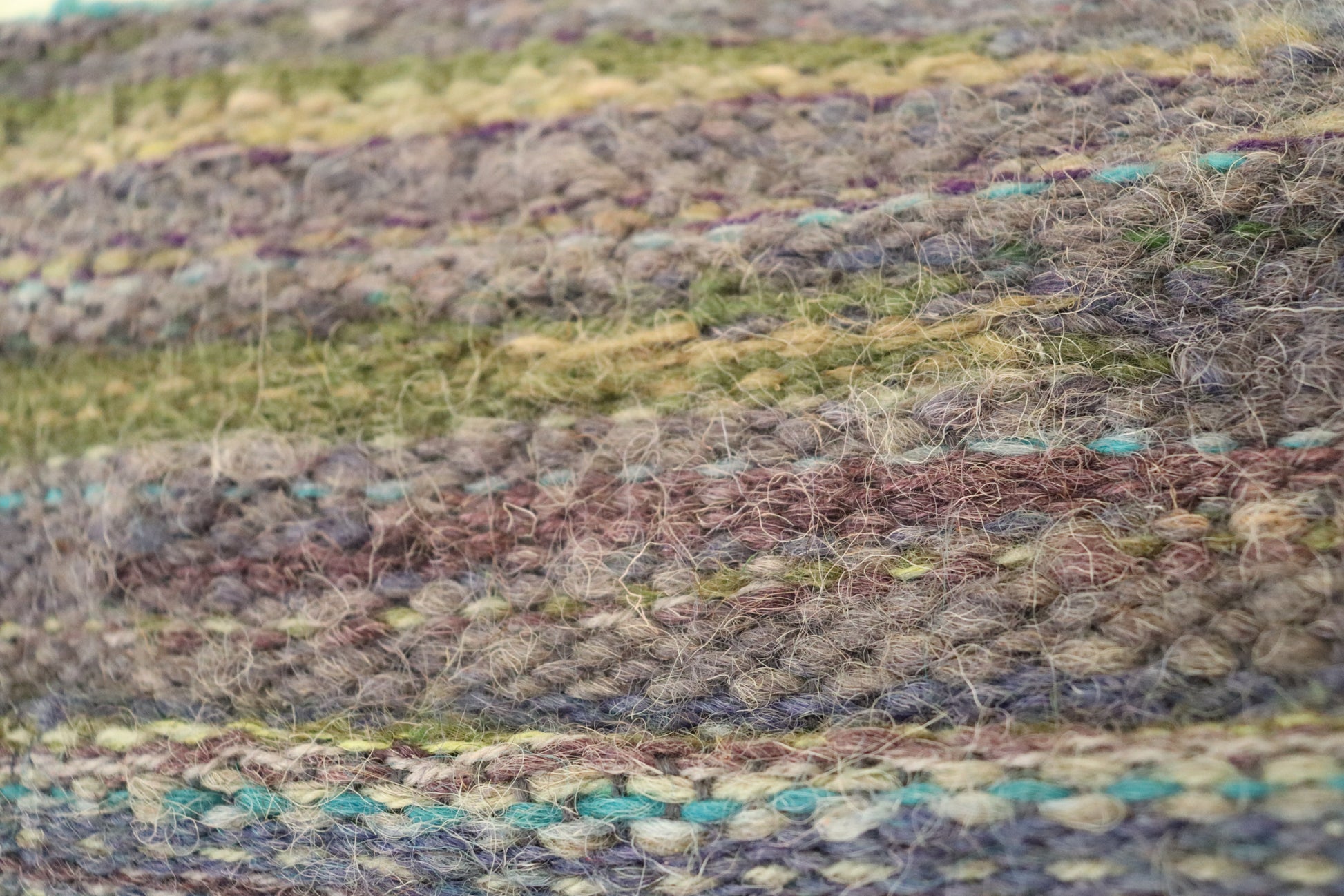 The raw wool in this piece was shorn from Brigitte's husband's own sheep, then cleaned, dyed and spun by Brigitte.